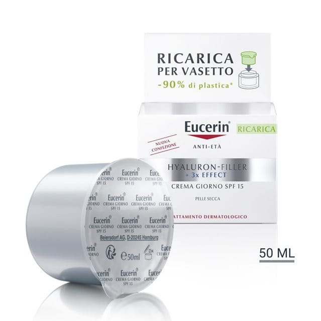 Il formato ricarica è realizzato con il 90% di plastica in meno rispetto alla confezione standard. Scegliendo questa ricarica, puoi contribuire alla riduzione dei rifiuti di plastica e a un ciclo di consumo più sostenibile. Compatibile con tutti i vasi standard delle creme viso Eucerin.